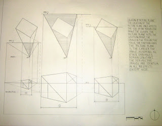 Here is a page in my sketchbook that shows my notes on perspective drawings this week from Stoel's teachings.